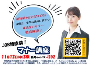 メール(recruit@nafu.ac.jp)または公式LINE(@981dnfdx)でお申し込みください。