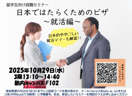 【留学生向けセミナー】10/29(水)3限『日本ではたらくためのビザ~就活編』開催のお知らせ