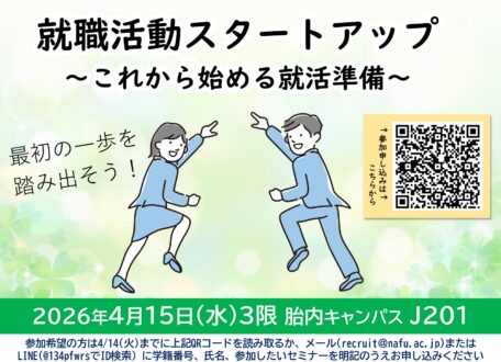 【就職活動支援セミナー】4/15(水)『就職活動スタートアップ講座~これから始める就活準備~』のお知らせ